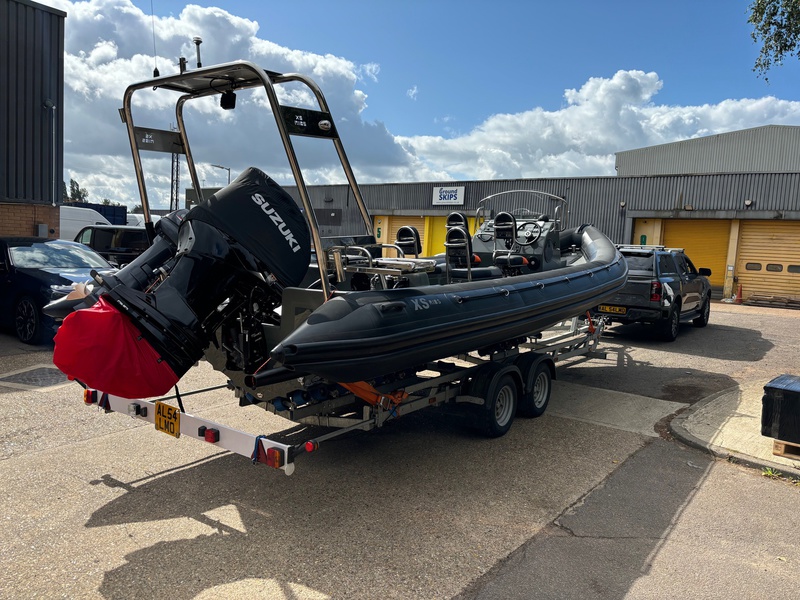 This XS 850 is in build now but we have stopped construction as the order has been cancelled. The boat is Battle Ship Grey Fibreglass and Black Tubes.