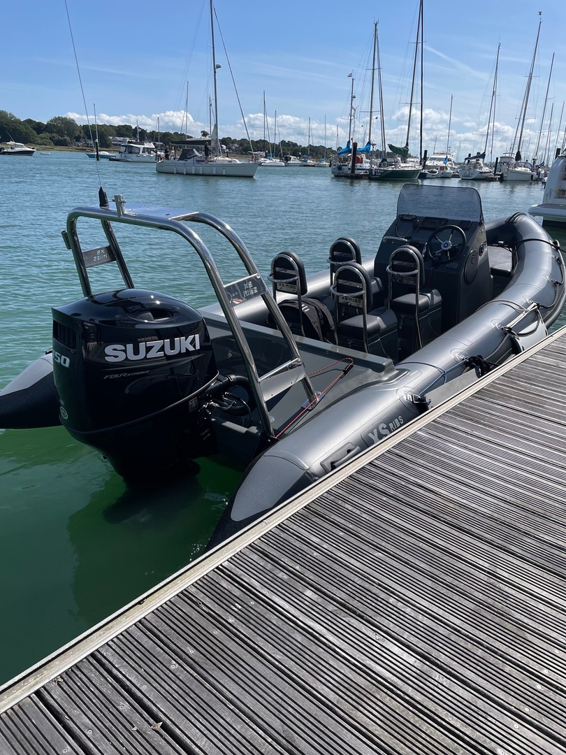 IMAGES ARE OF A SIMILAR BOAT THE BOAT OFFERED IS BLACK TUBES AND BATTLE SHIP GREY FIBREGLASS